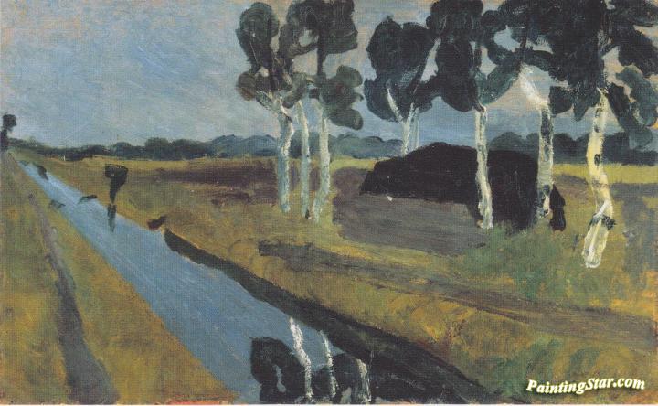 Landscape with bog canal, Art Painting by Paula Modersohn-Becker