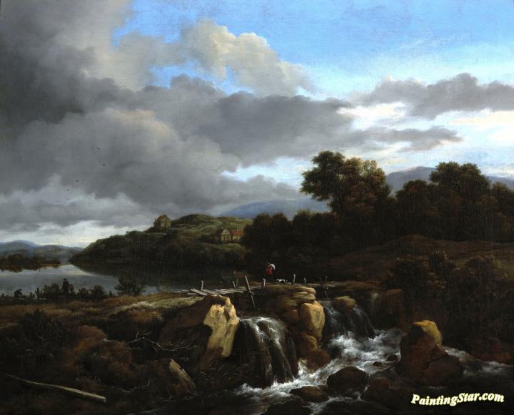 Landscape with Cascade, Art Painting by Jacob van Ruisdael