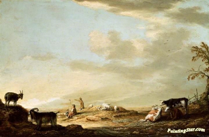 Landscape with Cattle and Figures, Art Painting by Aelbert Cuyp