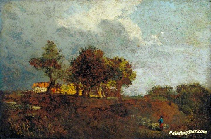 Landscape with Elm Trees and a Farm, near Bayswater, Art Painting by William Henry Hunt
