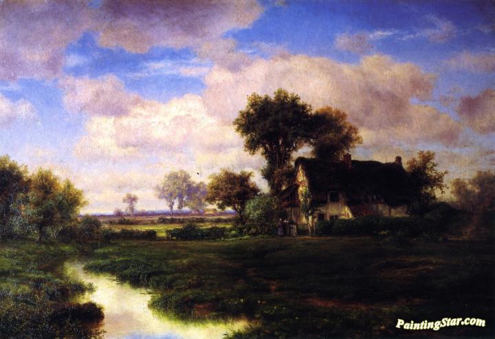 Landscape with Farmhouse by a Stream, Art Painting by Louis Remy Mignot
