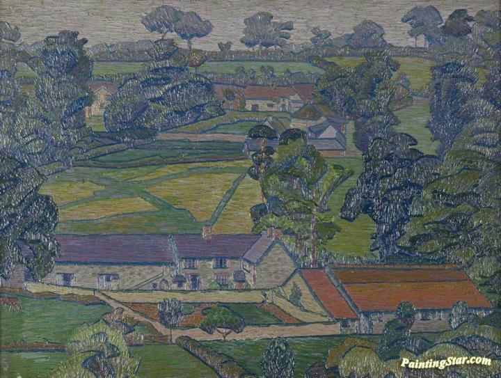Landscape with Farmhouses, Art Painting by Charles Ginner