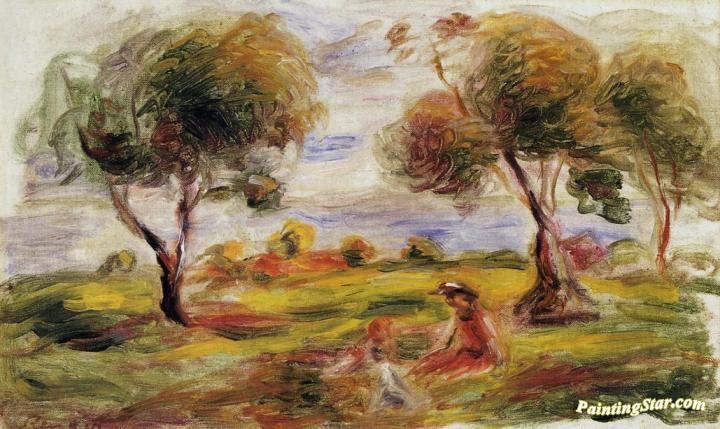 Landscape with Figures at Cagnes, Art Painting by Pierre Auguste Renoir