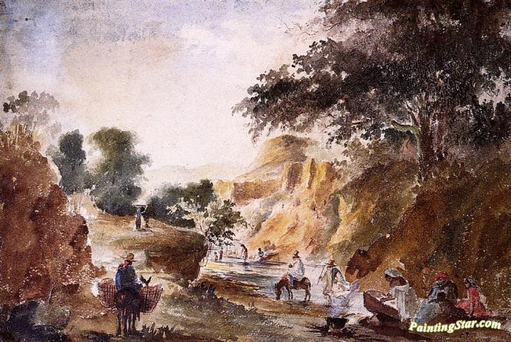 Landscape with Figures by a River, Art Painting by Camille Pissarro