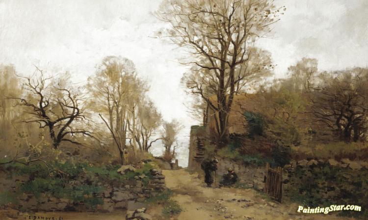 Landscape With Figures Resting On A Path And The Sea In The Distance, Art Painting by Pierre-Emmanuel Damoye