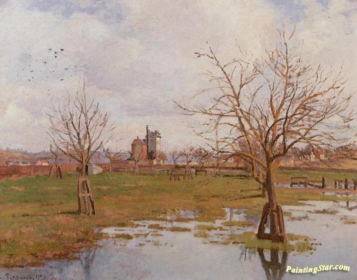 Landscape with Flooded Fields, Art Painting by Camille Pissarro