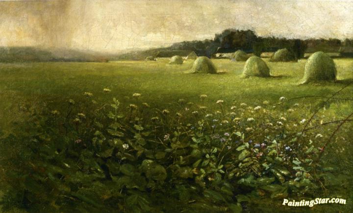 Landscape with Grain Stacks, Art Painting by Charles Ethan Porter