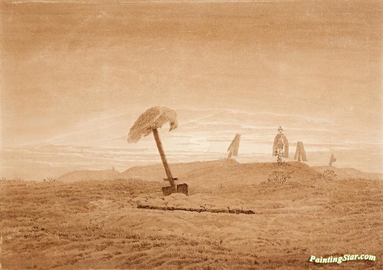 Landscape With Graves C.1835-1837, Art Painting by Caspar David Friedrich