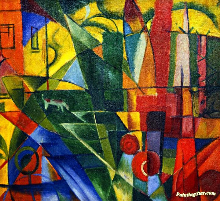 Landscape with House and Two Cows, Art Painting by Franz Marc