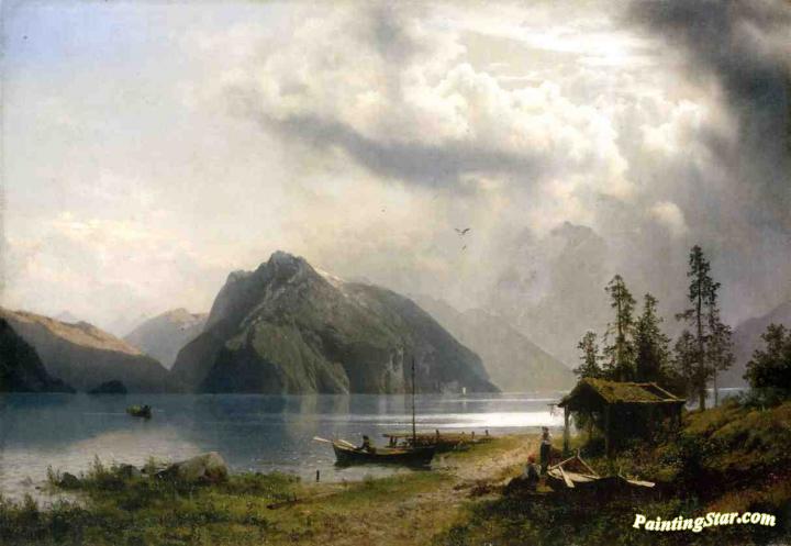 Landscape with Lake and Mountains, Art Painting by Herman Herzog
