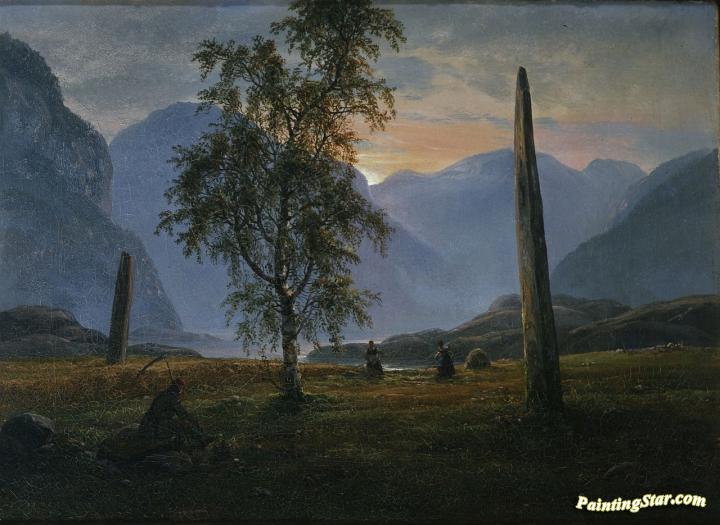 Landscape with memorial stones, Art Painting by Johan Christian Dahl