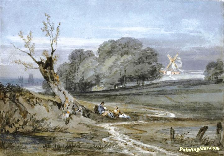 Landscape with Mill, Durham Cathedral in the Background, Art Painting by Joseph Mallord William Turner