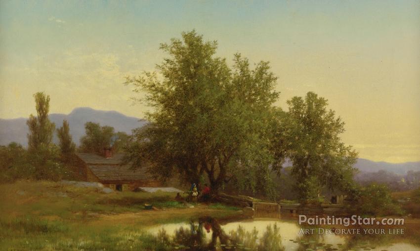 Landscape With Pond, Barn And Figures, Art Painting by Albert Fitch Bellows