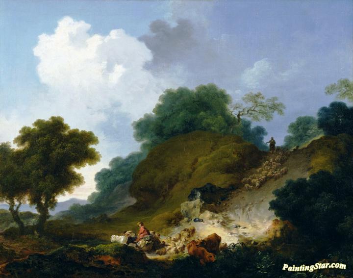Landscape With Shepherds And Flock Of Sheep, Art Painting by Jean Honore Fragonard