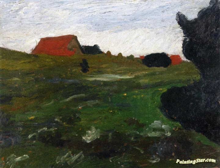 Landscape with Shrubs and Red Houses, Art Painting by Paula Modersohn-Becker