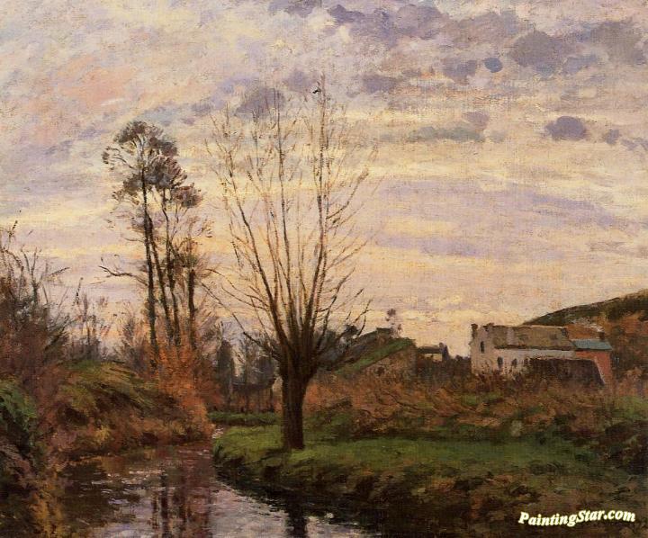 Landscape with Small Stream, Art Painting by Camille Pissarro
