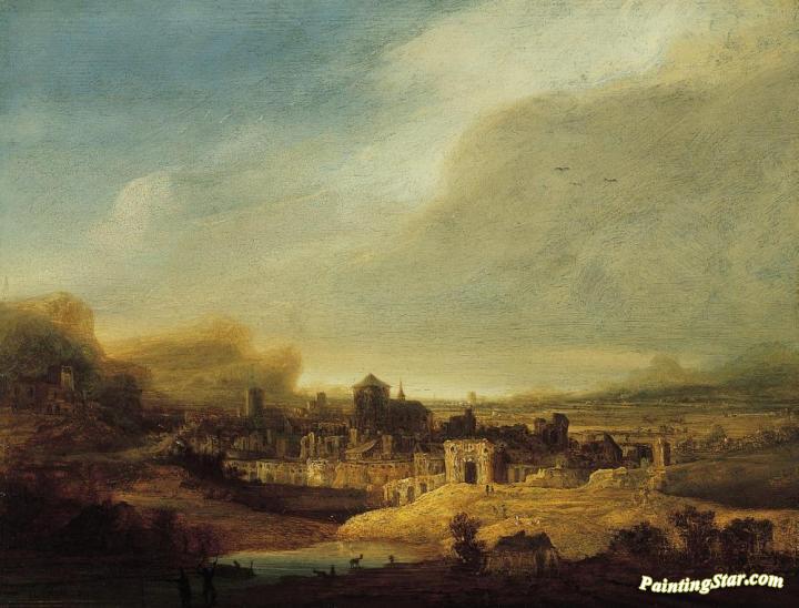 Landscape with View of a Town, Art Painting by Jan Lievens