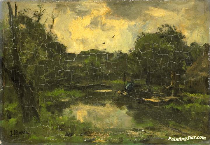 Landschap met schuit, Art Painting by Jacob Maris