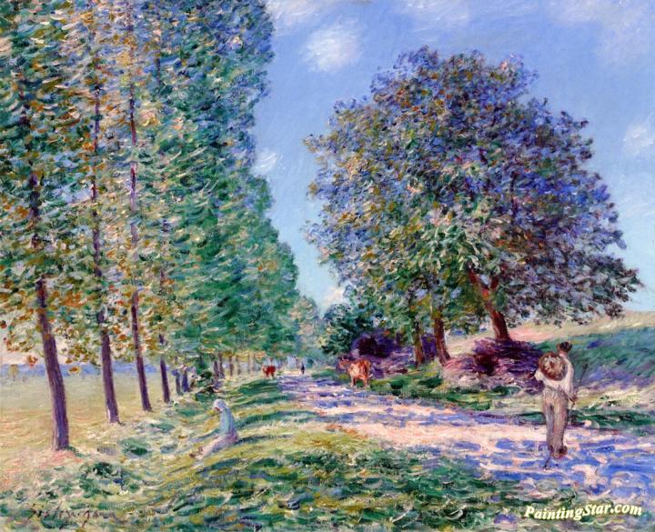 Lane of Poplars at Moret on the Banks of the Loing, Art Painting by Alfred Sisley