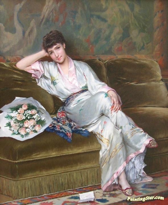 Le Billet Doux Huile Sur Toile, Art Painting by Gustave-Leonard de Jonghe