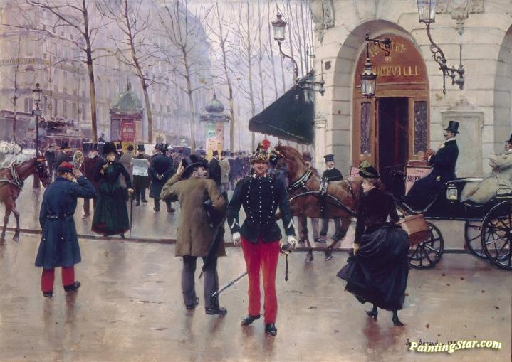 Le Boulevard Des Capucines Devant Le Théâtre Du Vaudeville., Art Painting by Jean Georges Beraud
