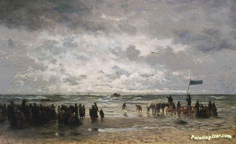 Le DÉpart Du Bateau De Sauvetage, Art Painting by Hendrik Willem Mesdag
