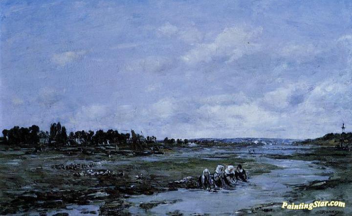 Le Faou: Laundresses on the Banks of the River, Art Painting by Eugène-Louis Boudin