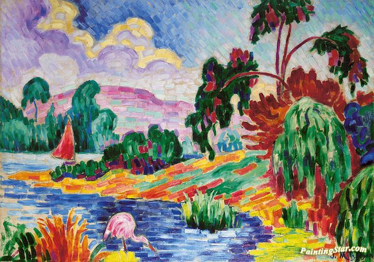 Le Flamant Rose Et Le Voilier, Art Painting by Jean Metzinger