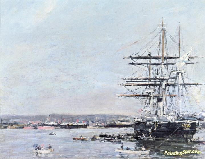 Le Havre, A Russian Corvette at Anchor, Art Painting by Eugène-Louis Boudin