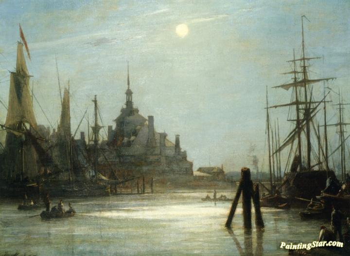 Le Hoofdpoort a Rotterdam, Effet de Lune, Art Painting by Johan Berthold Jongkind