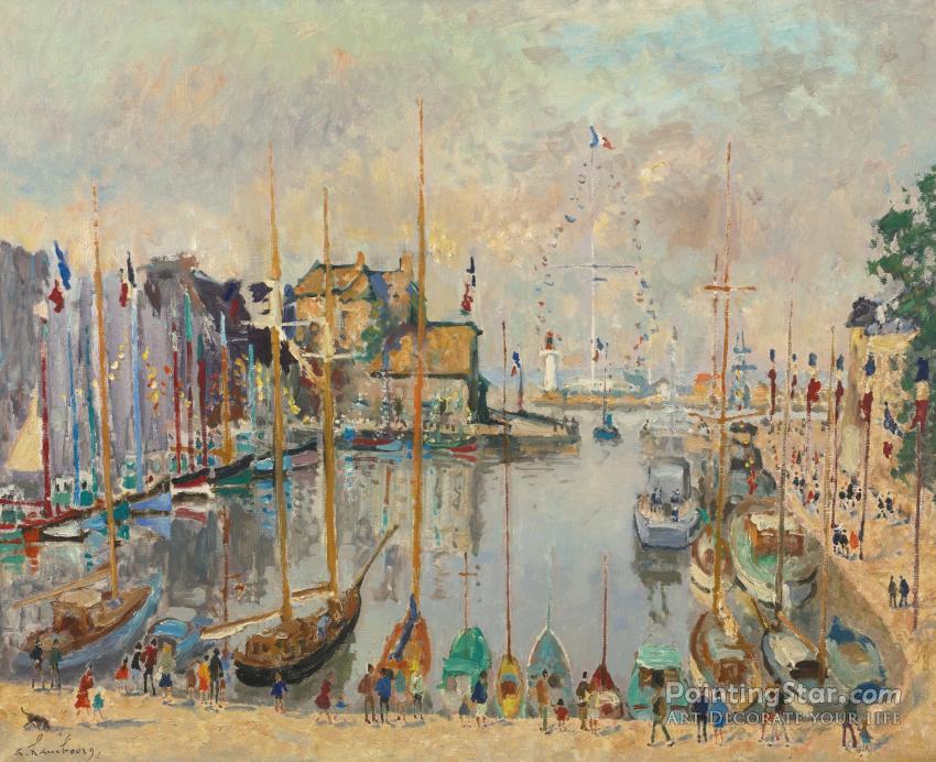 Le Vieux Bassin, Honfleur, Dimanche De Pentecote, Art Painting by André Hambourg