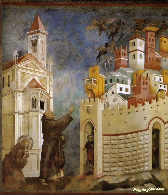 Legend Of St Francis: 10. Exorcism Of The Demons At Arezzo (upper Church, San Francesco, Assisi), Art Painting by Giotto di Bondone