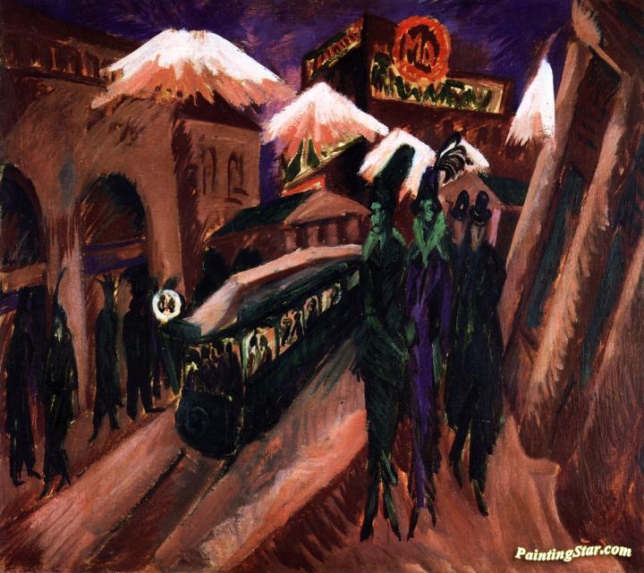 Leipziger Straße mit elektrischer Bahn, Art Painting by Ernst Ludwig Kirchner