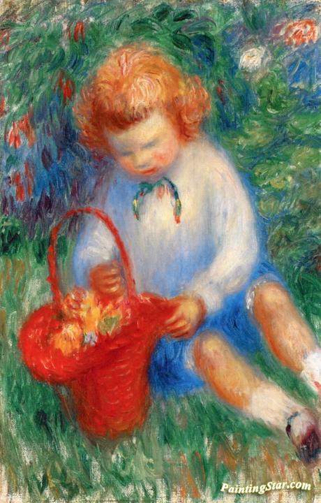 Lenna with Basket of Flowers, Art Painting by William James Glackens