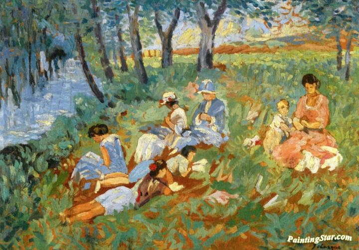 Les Andelys, The Lebasque Family by the Water, Art Painting by Henri Lebasque