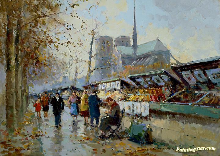 Les Bouquinistes, Art Painting by Edouard Léon Cortes