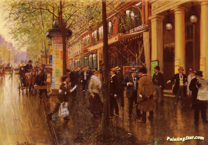 Les Grands Boulevards: Le Théâtre des Variétés, Art Painting by Jean Georges Beraud
