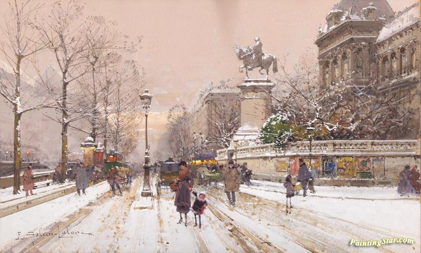 Les Quais Et La Statue Saint Marcel, Art Painting by Eugene Galien-Laloue
