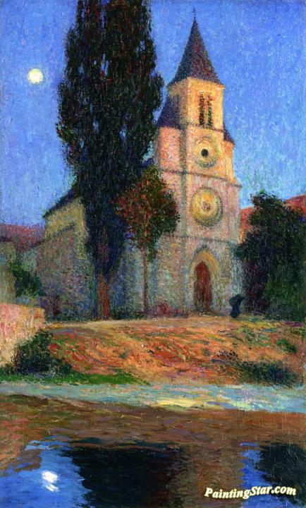 Lever de Lune derrière l'Église de la Bastide-du-Vert, Art Painting by Henri Martin