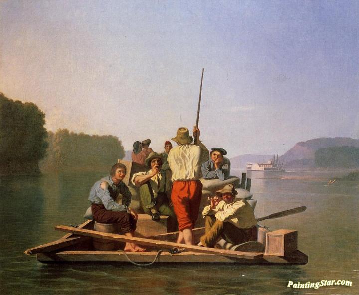 Lighter Relieving The Steamboat Aground, Art Painting by George Caleb Bingham