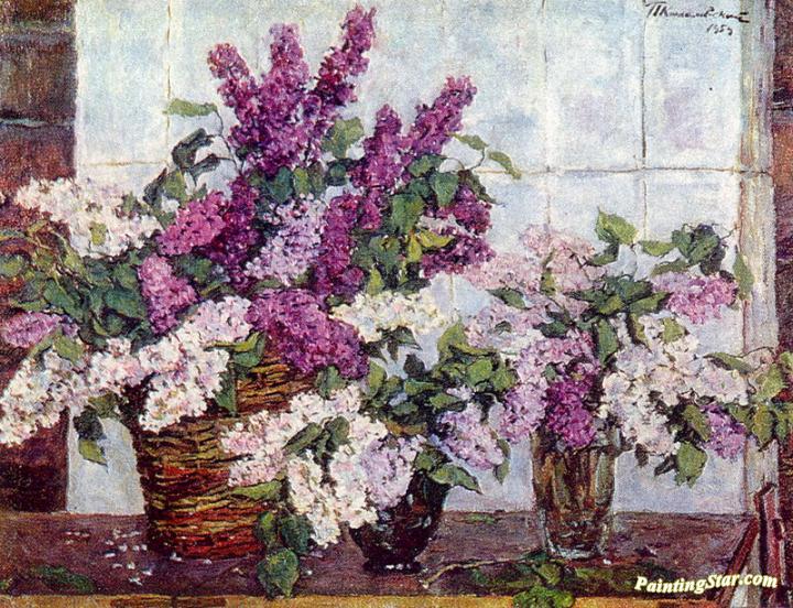 Lilac, crystal vase and a basket, Art Painting by Pyotr Konchalovsky