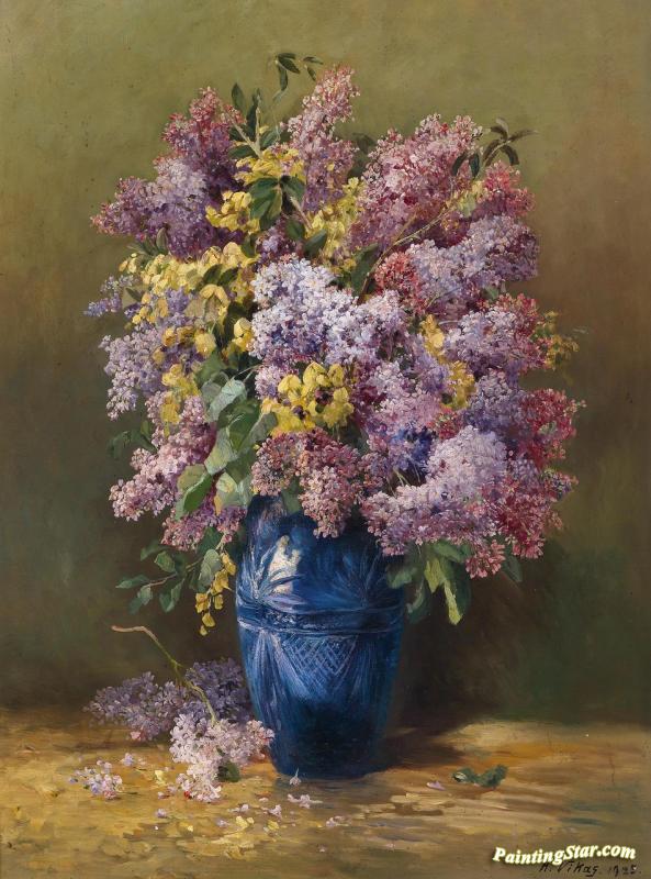 Lilacs In Blue Vase, Art Painting by Karl Vikas
