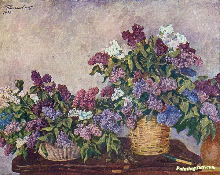 Lilacs in two baskets, Art Painting by Pyotr Konchalovsky