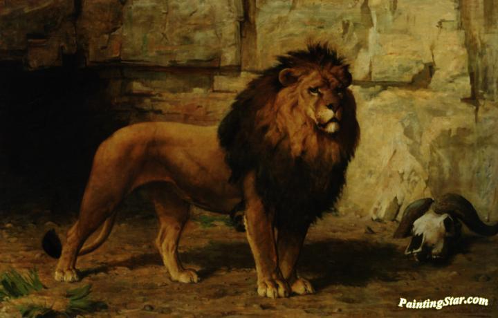 Lion Guarding His Den, Art Painting by George Goodwin Kilburne