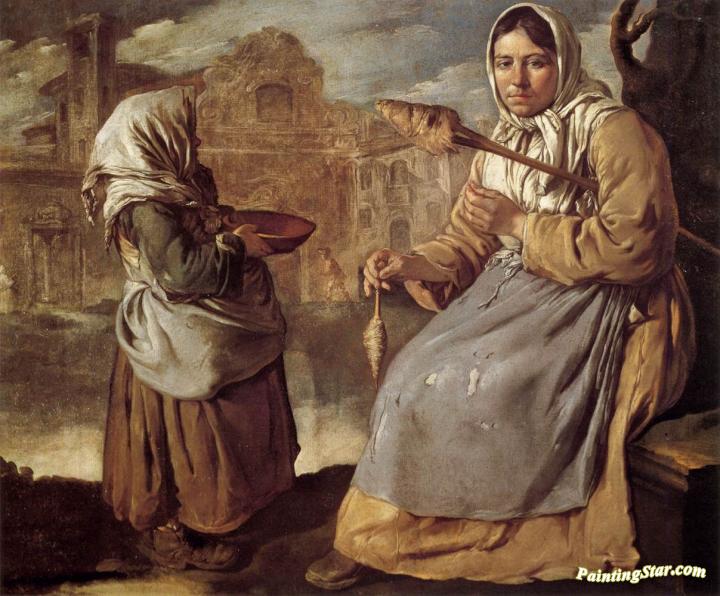 Little Beggar Girl And Woman Spinning, Art Painting by Giacomo Ceruti