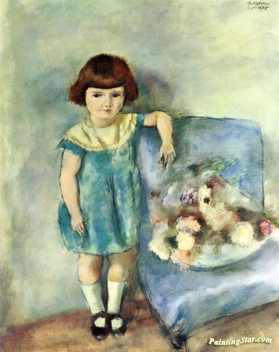 Little Girl beside a Bunch of Flowers, Art Painting by Jules Pascin