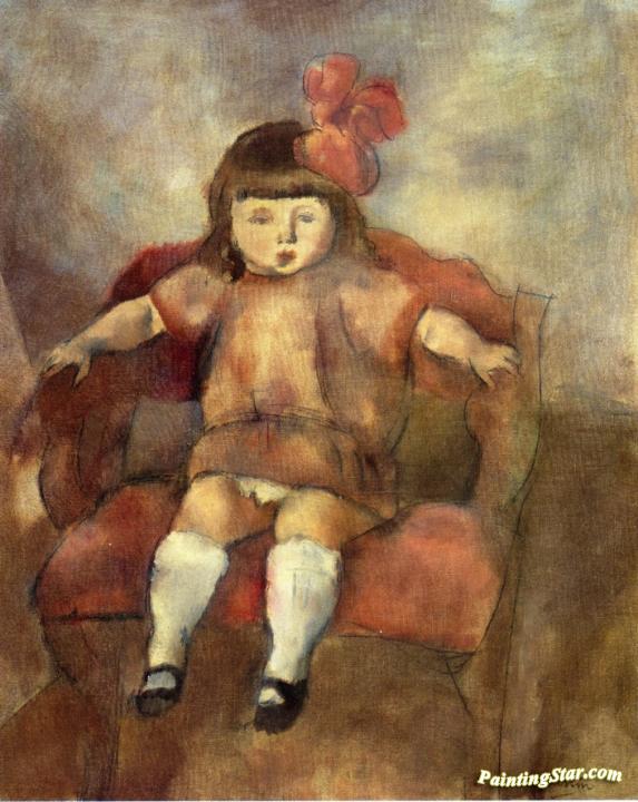 Little Girl in an Armchair, Art Painting by Jules Pascin