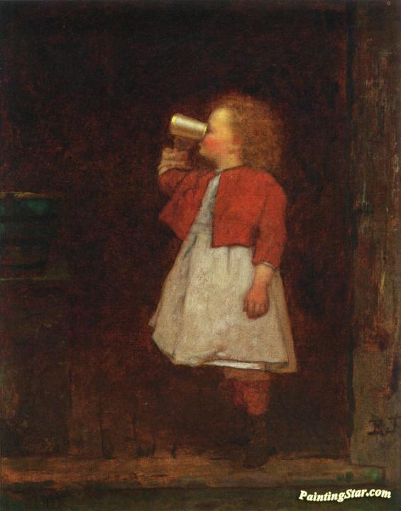 Little Girl with Red Jacket Drinking from Mug, Art Painting by Eastman Johnson