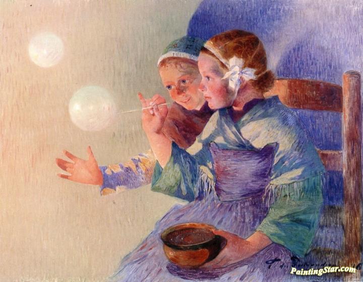 Little Girls with Soap Bubbles, Art Painting by Ferdinand du Puigaudeau