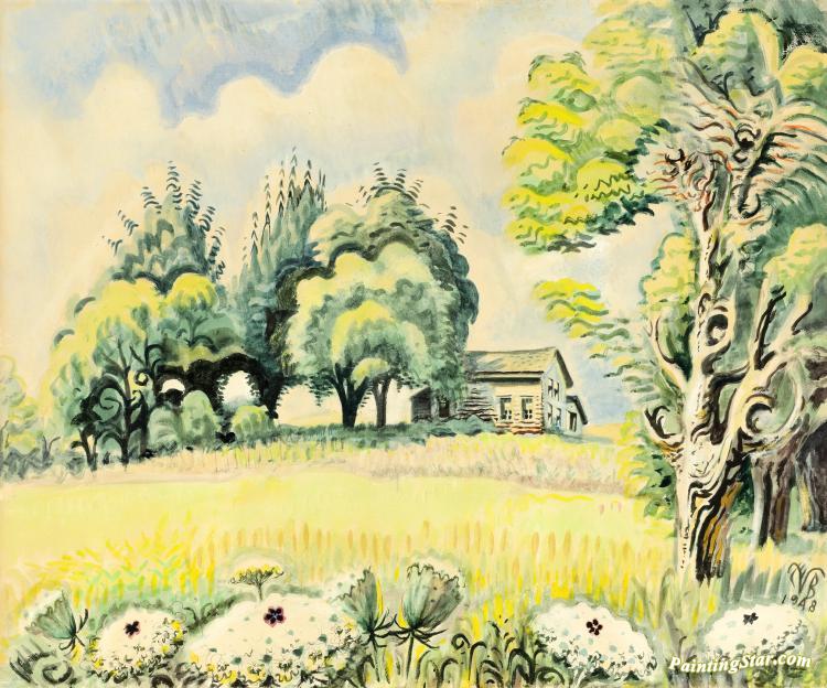 Little House In August - Ease Of Line Lake - Western New York, Art Painting by Charles Burchfield